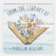 Joli livre ouvert avec plaque de fleurs pour vos livres spéciaux. Dit de la bibliothèque de dans la main courbée typographie en haut. Le livre d'aquarelle est agréable et présente différentes fleurs. Ajoutez votre nom pour vous assurer que vos livres trouvent leur chemin à la maison. Voir aussi nos autres points de coordination.