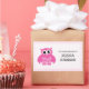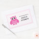 Livre de chouette rose autocollants étiquette | Fournitures scolaires pour petites filles. Joli oiseau animal de dessin animé avec nom et texte d'enfants personnalisables. Design enfant.