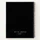 Un sketchbook en noir et blanc, personnalisé 8,5 x 11. Les mots "carnet de notes de Jonathan" dans une police dessinée à la main et personnalisée avec votre nom. Customisez le carnet d'esquisses avec le nom de votre choix pour que quelqu'un se sente spécial. Idéal pour un artiste en herbe. Fait un cadeau amusant pour les anniversaires ou pour Noël. Vient dans une variété de couleurs. Conçu pour vous par Blackberry Boulevard.