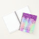 Un arrière - plan holographique branché aux couleurs pastel unicorne et arc-en-ciel rose, violet, or rose, vert menthe. Décoré avec des gouttes de parties scintillant en or rose, rose et violet. Personnalisez et ajoutez un nom, The title : sketchbook écrit avec un script de style à la main moderne et girly avec des swashes. Lettres violettes. Un carnet pour les dessins, esquisses, notes et devoirs scolaires.