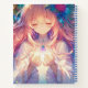 Jolie fille anime en rose et bleu avec des fleurs dans ses cheveux tenant une boule magique de lumière.