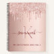 Un faux rose or métallique à l'aspect arrière - plan avec l'or rose élégant et rose faux parties scintillant gouttes, la peinture goutte à goutte. Personnalisez et ajoutez un nom, une lettre monogramme et un titre. Le nom est écrit en Bourgogne avec un grand script de style moderne et écrit à la main avec des swashes. Parfait pour l'école, comme carnet de croquis ou pour prendre des notes. Pour que les swashes ne suppriment que le nom de l'échantillon, laissez les espaces ou émoticônes devant et après le nom.
