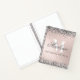 Elégant nom de calligraphie et Monogram Blank Sketchbook - Girly art journal avec un faux arrière - plan rose rousse métallique avec bordures de parties scintillant argent. Un joli carnet de croquis qui ferait un grand cadeau de carnet de voyage pour les artistes. Ajoutez votre nom au modèle de script cursif, au monogramme personnalisé et au numéro de volume pour créer votre propre journal de dessin personnalisé.