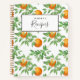Savourez et sauvegardez toutes vos recettes favorites de famille dans votre propre livre de recettes! Gardez le livre de recettes à portée de main pour que chacun dans la famille puisse préparer un plat délicieux, déposez toutes vos recettes traditionnelles et originales comme des petits-enfants à distribuer à vos enfants et petits-enfants. Recette couverture du journal caractéristiques aquarelle illustration des oranges et des fleurs d'oranges de Valence fraîches et brillantes!