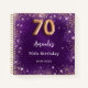 Un livre d'or pour une fête de 70e anniversaire féminine et glamour. Un arrière - plan violet élégant avec un faux violet et or rose brille. La couleur violette est inégale. Personnalisez et ajoutez votre nom et une date.