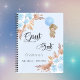 Pour un baby shower élégant et moderne. Un arrière - plan bleu clair. Décoré de bleu clair, de fleurs, d'herbe de pampas et d'un ours en peluche tenant un ballon. Personnalisez et ajoutez un nom et une date.