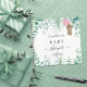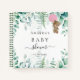 Pour un baby shower élégant et moderne. Un arrière - plan blanc. Décoré de verdure d'eucalyptus, de fougères de bois et d'une fille d'ours en peluche tenant un ballon rose. Personnalisez et ajoutez un nom et une date. Peut être utilisé comme livre d'or ou pour planifier la fête.