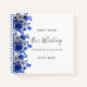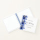 Un arrière - plan blanc décoré de fleurs d'apparence royale bleu et argent. Personnalisez et ajoutez vos noms et votre date de mariage.