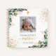 Pour un baptême élégant, neutre du genre. Un arrière - plan blanc chic, décoré de verdure d'eucalyptus, de poussière de parties scintillant en faux or et d'une croix dorée. Personnalisez et ajoutez une photo de taille carré sur le devant, le nom de l'enfant et la date du baptême. Lettres noires et dorées. Retour : ajoutez vos propres 3 photos au dos, nom et date de naissance. Images de taille verticale (taille de portrait)
