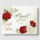 Beau livre d'hôtes mariage avec fleurs rouges et blanches et feuilles verts Les détails de la parties scintillant d'or sont simulés. POUR PLUS DE PRODUITS CORRESPONDANTS cliquez sur la collection ci-dessus ou contactez-moi