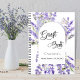 Un élégant arrière - plan blanc décoré d'un cadre en arc de cercle de fleurs de lavande violette. Personnalisez et ajoutez un nom et un titre/événement. Le livre d'hôtes est écrit avec une écriture élégante à la main.