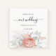 Un arrière - plan blanc chic avec des fleurs roses d'or et de blanc, un feuillage argenté et une croix dorée. Personnalisez et ajoutez vos noms et votre date.