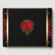 Livre d'hôtes rouge noir et or mariage avec beau coeur satiné rouge et or sur un élégant arrière - plan rouge noir et or damassé. Ajoutez le texte de votre choix dans le style et la couleur de police que vous préférez. Ce livre d'hôtes rouge noir et or mariage est facilement customisé avec votre texte sur le devant, le dos et la colonne vertébrale.