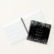 Un arrière - plan noir élégant avec de la poussière de parties scintillant fausse argent. Personnalisez et ajoutez un nom et la date. Peut être utilisé comme livre d'or, planification de la fête ou comme faveur de la fête.