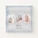Un arrière - plan métallique faux argenté, décoré de poussière de parties scintillant bleue et d'une croix dorée. Personnalisez et ajoutez une photo de taille carré sur le devant, le nom de l'enfant et la date du baptême. Retour : ajoutez vos propres 3 photos au dos, nom et date de naissance. Images de taille verticale (taille de portrait)