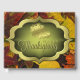 Une couverture de feuilles d'automne colorées en rouge vif, oranges, dorées et marron fournissent la goutte arrière pour ce magnifique design Thanksgiving. Les feuilles sont surmontés d'un "Bon thanksgiving" en "or" frappant et d'un dégradé vert profond, ce qui en fait le choix idéal pour garder des souvenirs de Thanksgiving. Les entrées de famille, d'amis ou d'invités d'honneur donnent lieu à une belle tenue de vacances.