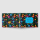 Livre d'hôtes mariage design en noir avec un ensemble de fleurs très vives et colorées. Une zone de texte de plaque décorative bleue a un texte personnalisé noir prêt à être personnalisé, pour votre journée spéciale.