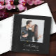 Les clients peuvent signer leurs meilleurs voeux, même ajouter des photos instantanées dans cet élégant livre d'invités en spirale avec votre photo préférée sur le devant avec une bordure intérieure de n'importe quelle couleur, nous montrons noir, et toute couleur arrière - plan, nous montrons noir. Votre nom, date et toute autre information en lettres chic sur le devant. CHOISISSEZ LES PAGES DE STYLE À L'INTÉRIEUR !