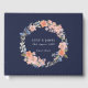 Rejoignant d'autres objets de notre collection mariage de de fleurs de marine et de pêche, ce livre d'or mariage présente une couronne florale de pêche et d'aquarelle bleue avec un arrière - plan de marine sophistiqué.