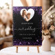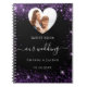 Un carnet de réservation d'hôtes bon marché. Un arrière - plan noir élégant aux faux éclats violets. Personnalisez et ajoutez vos noms et votre date de mariage. Ajoutez votre photo au cadre photo en forme de coeur.