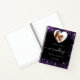 Un arrière - plan noir élégant aux faux éclats violets. Personnalisez et ajoutez vos noms et votre date de mariage. Ajoutez votre photo au cadre photo en forme de coeur.