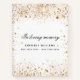 Un arrière - plan blanc élégant avec de la poussière de parties scintillant en faux or. Avec le texte : Dans la mémoire aimante écrite avec un élégant script de style écrit à la main. Ajoutez un nom et des dates.