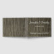 Ce livre d'hôtes de base pour les mariages ou les mariages contient le message "Livre d'or de la cérémonie des Mariages", les noms personnalisés du couple marié et la date de réception du mariage. Il dispose également d'un arrière - plan avec un bois rustique comme un motif. Il pourrait être utilisé pour enregistrer des messages heureux pour le couple nouvellement marié.