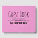 La typographie jeune, branchée, fraîche et moderne crée un livre d'or mariage unique. Arrière - plan rose clair. Vous pouvez également modifier l'arrière - plan pour qu'il soit coordonné avec vos couleurs mariages. Le séparateur de texte décontracté comprend des fleurs et des coeurs et donne à l'invité mariage livre une ambiance d'art populaire bohème.