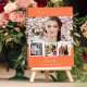 Créez votre propre collage photo unique. Utilisez quatre, quatre de votre photo préférée. Personnalisez et un nom et un âge/dates. Un corail, une couleur d'arrière-plan orange, un texte blanc.
