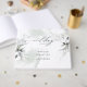 Livre d'invité mariage | Moderne rustique fumée gris vert éthérée feuilles et aquarelle, cette belle aquarelle peinte à la main offre des nuances de vert muet avec des reflets or. La calligraphie manuscrite est combinée à une police minimaliste de style contemporain. Un look tendance pour toutes les saisons. Il fait partie d'une collection de papeterie mariage Aquarelle Dusty Green Foliage avec accessoires mariages assortis. © WhimsicalArtwork créée pour BarefootBride™
