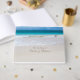 Joli livre d'hôtes mariage à thème de plage avec une photo d'une belle plage de sable blanc et d'eau colorée bleue et d'eau d'eau d'eau d'eau. Personnalisez les champs de texte pour votre journée spéciale. Des produits mariages correspondants sont disponibles.