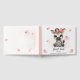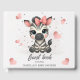 Cute baby shower or birthday guest book featuring adorable little female zebra wearing a cute pink bow with some love hearts