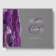 Cet élégant livre d'invités de mariage présente une aquarelle violette design ornée de parties scintillant en faux argent. Customisez facilement le texte gris argenté sur un arrière - plan gris moyen, avec les noms du couple dans la calligraphie de l'écriture manuscrite fantaisiste sur une grande esperluette violette. Ajoutez le texte de votre choix à l'avant et à la colonne vertébrale.