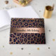 Elégante, cool, glamour et féminine pour une fête de 40e anniversaire avec motif léopard brun, doré et noir, décorée de confettis dorés. Modèle pour un nom et âge 40. Un faux brassard métallique en bronze. Script de style en lettres de couleur noire, lettres. Épine : ajoutez votre propre texte.