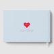 Créez votre propre personnalisation, personnalisée, simple, belle élégante vrai feuille faux argent typographie / script / police / calligraphie sur le bleu poussiéreux, les coeurs rouges, mariage / anniversaire livre d'or, avec couverture faite de papier de qualité supérieure rehaussée de luxueux revêtement de velours. Le dos présente les noms du couple avec leurs initiales en faux argent en feuille véritable sur un coeur rouge. Tapez simplement les noms de la mariée et du marié ou de la femme et du mari, la date du mariage / anniversaire, et les initiales du couple. pour customiser. Un beau, élégant, gardien spécial, pour laisser vos invités ouvrir leurs pensées et garder des souvenirs frais comme c'était hier. Elevez votre occasion spéciale, captez des messages sincères, des voeux de bonheur et des souvenirs avec style et grâce avec ce livre d'or personnalisé, personnalisé pour vous.