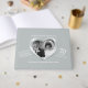 Platinum mariage anniversaire fête personnalisée livre d'or. Idéal pour ajouter une touche personnalisée à la soirée spéciale 70ème anniversaire de mariage en platine. Utilisez ce livre d'invités pour que vos invités laissent des messages donnant au couple heureux un cadeau personnalisé unique. Personnalisez avec vos noms de couples heureux et photo sur les deux côtés dans le cadre photo effet coeur platine. Effet cardiaque couleur platine gris art graphique et design par Sarah Trett pour www.mylittleeden.com