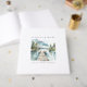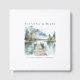Un livre d'or de mariage à l'aquarelle représentant un lac de montagne, avec des arbres persistants, des montagnes bleues lointaines et une jetée en bois s'étendant sur une eau calme, symbolisant le voyage que vous commencez ensemble. Conçu pour les mariages en montagne, en forêt, au bord d'un lac ou en destination, ce livre d'or élégant crée un souvenir précieux pour que les amis et la famille puissent partager leurs vœux et leurs souvenirs. La typographie serif classique garde la couverture intemporelle et lisible, tandis que le paysage à l'aquarelle doux apporte une beauté naturelle à votre table d'accueil. Une belle pièce de famille qui se coordonne parfaitement avec la suite d'invitations assortie.