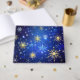 Arrière - plan de Noël bleu avec des flocons de neige en or et bijoux blancs. Des flocons dorés. XMAS.