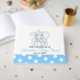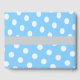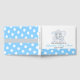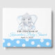 Un livre d'hôtes baby shower avec un adorable petit éléphant aux oreilles bleues est à l'avant avec une bordure en pois bleu et blanc le long du fond. . Personnalisez en ajoutant le nom et la date de la Mère à être du baby shower. Customisez le style, la couleur et la taille de la police. Visitez notre magasin pour trouver les produits correspondants dans cette collection.