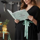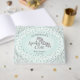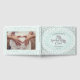 Cet élégant livre d'hôtes Mint Éffrayant Cute Bats Halloween Baby shower dispose d'une chic chauve-souris dessinée à la main et volant au milieu d'un ciel nocturne plein d'étoiles et de lunes jaunes, le tout contre un arrière - plan tourbillonnant de menthe pastel et orné de coins en toile d'araignée. Le dos est orné d'une photo. Personnalisez avec les détails de votre événement sur le capot avant et la reliure.