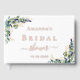 Un fond blanc classique, texte en feuille de rose or. Décoré de verdure d'eucalyptus et de fleurs de lavande. Personnalisez et ajoutez le nom de la future mariée et la date de la baby shower.