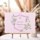 Un arrière - plan rose pâle. Décoré d'une crête rose, de fleurs roses et violettes, de fleurs, de fleurs. Avec une croix d'or. Personnalisez et ajoutez un nom et une date. Épine : ajoutez votre texte.