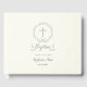 Baptême Feuille bleue et verte Cette couronne de feuilles bleues et vertes du printemps éclairera votre célébration. Ce design est sur un arrière - plan crème clair, orné d'une belle croix grise. Parfait pour le baptême de votre enfant ou la première sainte communion. Découvrez les accessoires, cadeaux, faveurs de fête et papeterie correspondants.