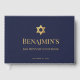 Un design simple bar mitzvah bleu marine et or dont la seule décoration est l'étoile de David en faux or dans la partie supérieure (et au dos et sur la colonne vertébrale). Tout le texte est en majuscules dorées et peut être modifié. Le fond est bleu marine.