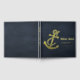 Elégant et moderne livre d'hôtes bleu et or nautique. Parfait pour que vos clients de yacht signent. Livre d'hôtes à l'allure classique avec ancre de navire. Créez votre propre texte et message pour impressionner votre famille et vos amis.