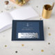 Bienvenue dans votre maison de plage avec ce livre d'hôtes de preppy dans les tons bleu marine avec de la vraie feuille d'argent. Ce livre personnalisé est doté d'un motif moderne minimaliste sur la barrière de corail à l'avant et à l'arrière, avec un cadre à l'avant comprenant une ancre, un corail et une étoile de mer. Les modèles de texte personnalisés ont de la place pour votre date établie, le nom de la maison de plage, un message de bienvenue et une ligne encourageant vos visiteurs à signer. Vous pouvez également ajouter du texte à la colonne vertébrale.