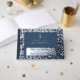 Bienvenue dans votre maison de plage avec ce livre d'hôtes de preppy dans les tons bleu marine avec de la vraie feuille d'argent. Ce livre personnalisé a un motif de corail nautique à l'avant et à l'arrière, avec un cadre à l'avant comprenant une ancre, un corail et une étoile de mer. Les modèles de texte personnalisés ont de la place pour votre date établie, le nom de la maison de plage, un message de bienvenue et une ligne encourageant vos visiteurs à signer. Vous pouvez également ajouter du texte à la colonne vertébrale.