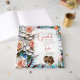 Une magnifique illustration qui imite un vitrail et des mosaïques de roses de corail et avec des accents bleus et autres colorés. Cet élégant livre d'or de mariage a une belle esthétique vintage. Nom de la mariée et de la mariée et date du mariage en or rose imprimé métallique.