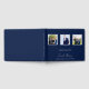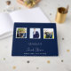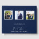 Un arrière - plan bleu marine classique. Texte de couleur blanche. Personnalisez et ajoutez 3 photos, nom, nom de l'école et année. Pour lui et elle. Le nom sur le devant est écrit avec un script de style écrit à la main.