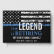 Cette conception comprend un drapeau de la police avec des rayures noires et blanches, ainsi qu'une fine bande bleue. Le texte "La légende prend sa retraite" se trouve au-dessus du nom personnalisable de l'officier, du shérif, du capitaine ou du chef de l'autorité qui prend sa retraite. Célébrez cette étape importante en style!